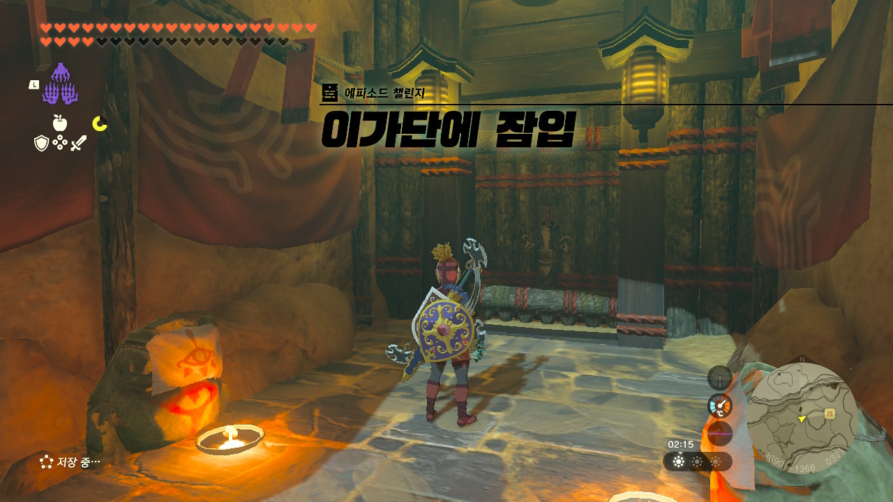 젤다의 전설 왕국의 눈물 에피소드 챌린지 이가단에 잠입 공략 차보 설원과 사파이어 대지 사이의 협곡에서 이가단의 아지트 입구를 발견할 수 있다. 이가단 의상을 입고와야 문을 열어준다는 이야기를 하며 에피소드 챌린지 이가단에 잠입이 시작된다. 이가단 복장은 추낙연구소에서 하나, 시작의 대지 남쪽/하일리아산 동쪽의 건물에서 하나, 이가단 마리타 지부에서 하나 획득이 가능하다. 복장을 갖춰입고 들어가면 문이 열리며 에피소드 챌린지 이가단에 잠입이 클리어 된다. 이후 안에 들어가서 이가단원들과 거래할 수 있으며 전투를 통해 보상을 얻을 수 있다. 내부에 들어간 후 망루 위로 올라가면 이가단원들과 배틀이 가능하다. 3명을 무찌르면 이가단의 원단을 얻을 수 있으며 6명을 무찌르면 토둔서를 얻을 수 있다. 토둔의 경..