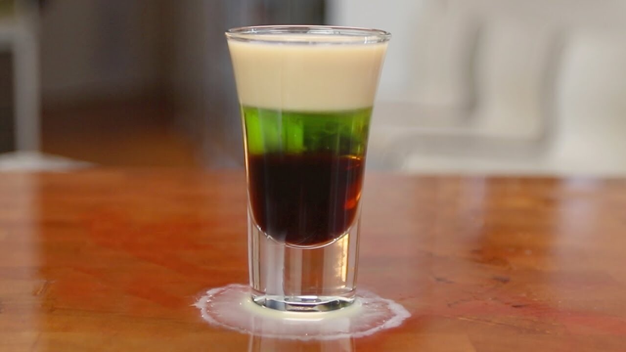 1. 샷잔에 깔루아, 미도리, 베일리스를 15ml씩 플로팅해준다.