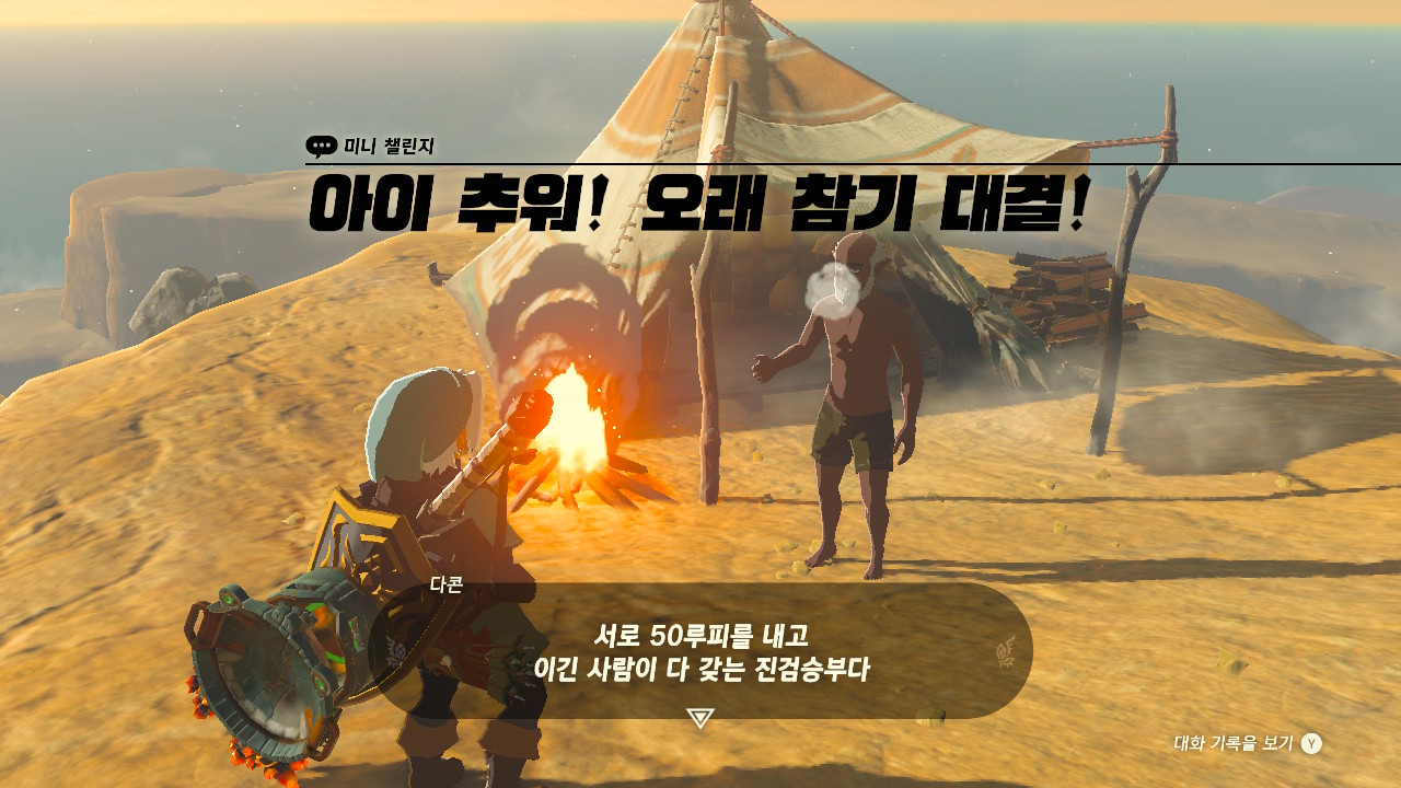 젤다의 전설 왕국의 눈물 미니 챌린지 갇힌 피아페 공략 겔드 캐니언 마구간을 들어가려고 하면 상자들로 문이 막힌 것을 볼 수 있다. 이 때 안에서 챌린지 마커가 떠있는 대화가 들리니 상자를 부수거나 이동시킨 후 진입해보자. 안에 있는 피아페에게 말을 걸면 이 마구간은 이상기후로 인해 폐쇠되었다고 하며 짐을 옮기는 문제만 남아있다고 한다. 단 지금 마구간에 있는 상자들이 너무 많아 이걸 정리하고 싶다고 하면서 미니 챌린지 갇힌 피아페가 시작된다. 무기로 부숴도 되지만 내구도가 깎이기에 불을 이용해 상자를 부셔보자. 마구간 앞에 나가면 횃불이 있는 것을 볼 수 있으며 옆 화로에 화염의 열매나 불속성 무기로 불을 지핀 후 횃불에 불을 옮기자. 상자 근처로 간 후 Y키를 누르면 링크가 횃불로 전방을 향해 지지는..